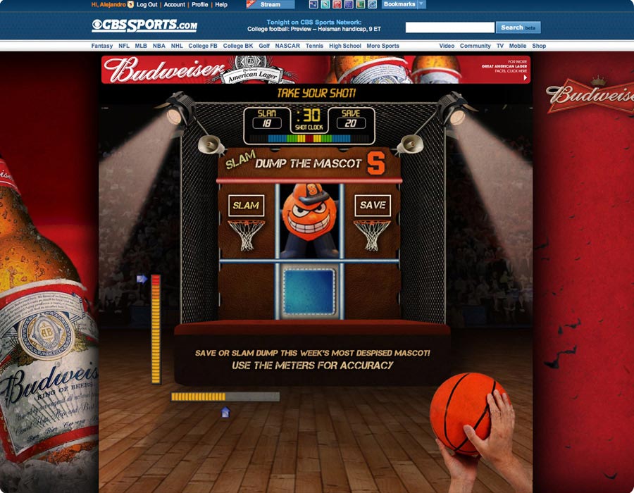 CBS Sports Interactive. Duties included online game conceptual design, banner ad layouts, landing pages, e-mail campaigns & Art production
